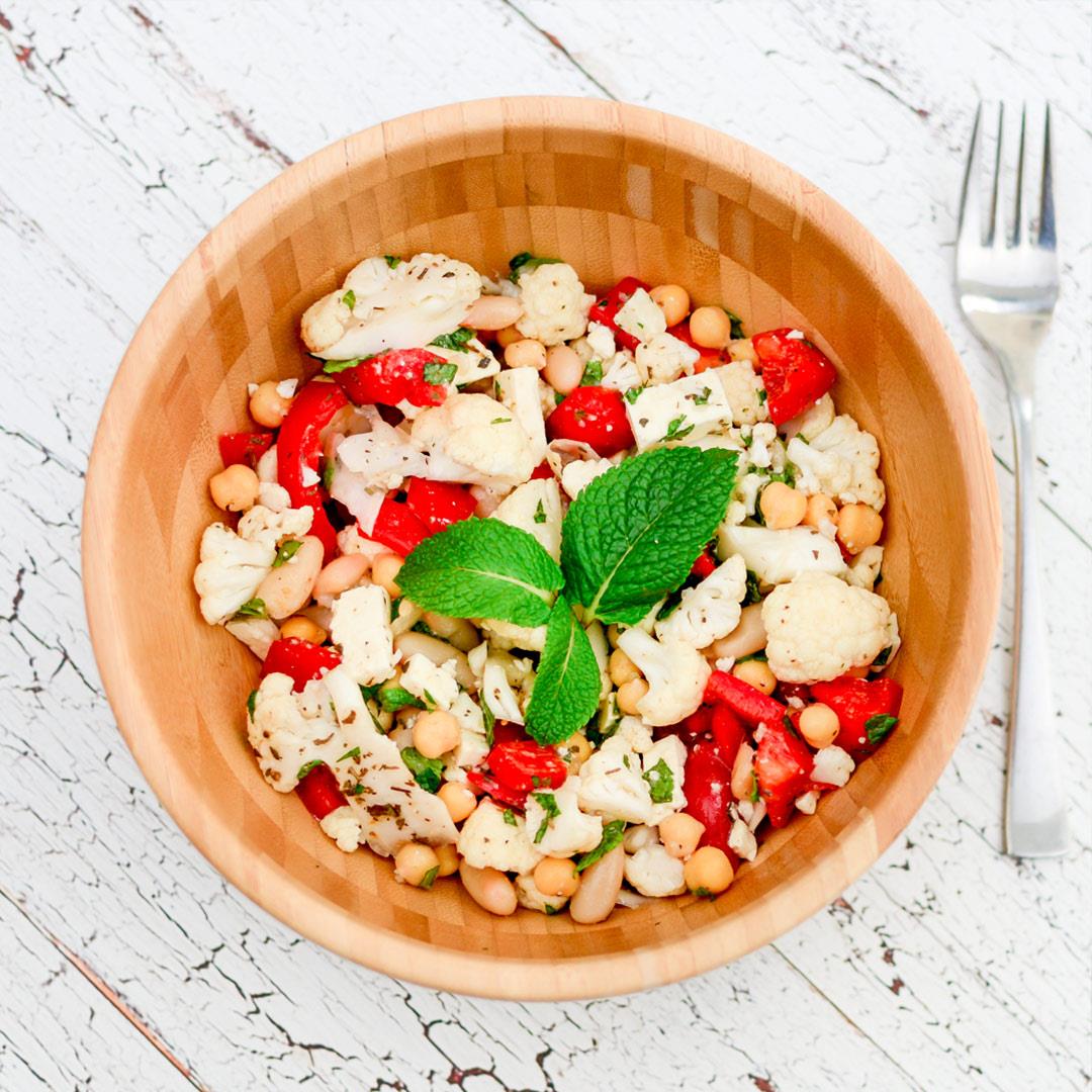 Bij een typisch Nederlands VGA’tje ligt er vaak bloemkool op je bord. Sinds ik zelf de touwtjes (en kookgerei) in handen heb is een VGA’tje en daarmee de bloemkool minder vaak ingrediënt van het recept. Tijd om daar verandering in te brengen, want bloemkool is onze eigen Hollandse superfood! En wel met een bloemkool salade. Super snel en makkelijk. Je hoeft de bloemkool niet eens te koken.