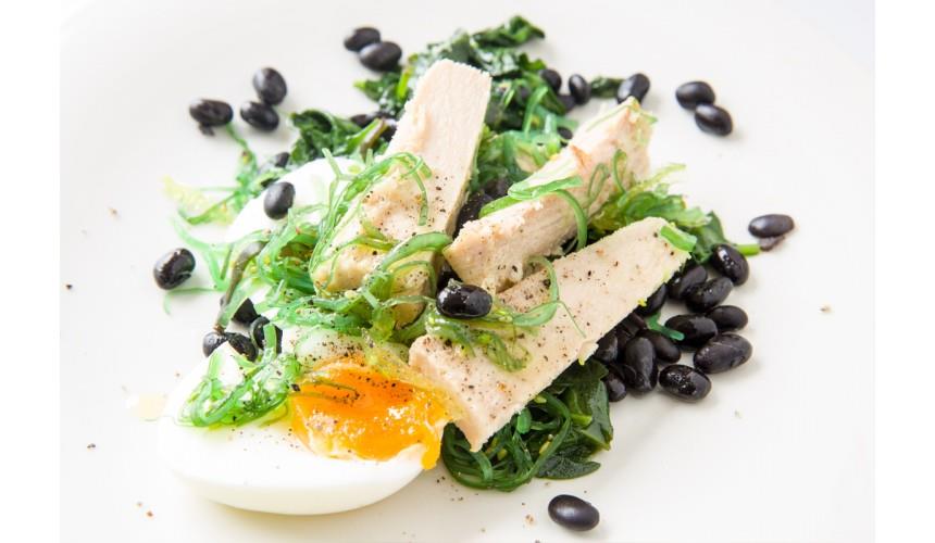 Geelvintonijn met zwarte bonen