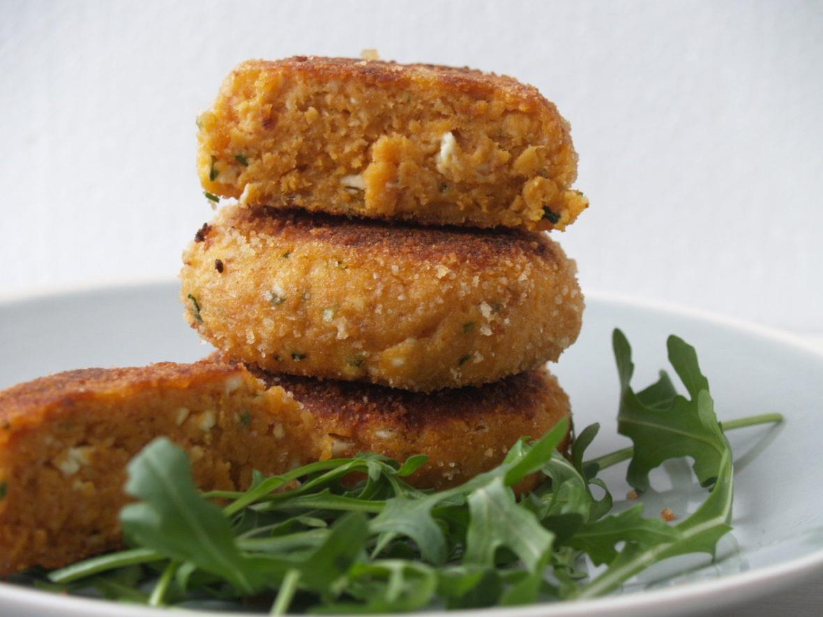 2. Snijd de zoete aardappel in plakjes, besprenkel met olijfolie en zout en plaats die 20 minuten op een bakplaat in de oven.