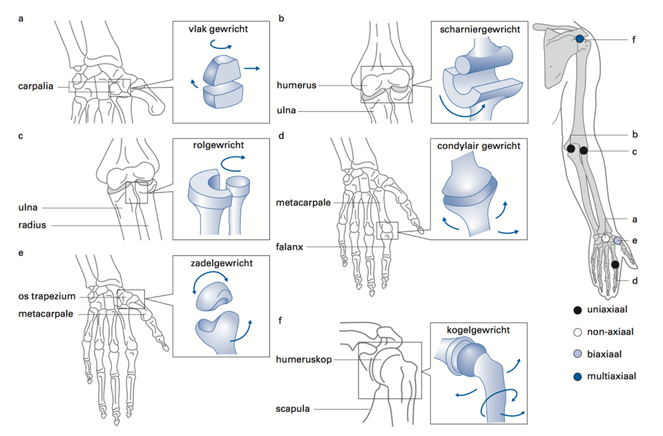 Er zijn heel veel verschillende gewrichten in het lichaam. Een gewricht is een plek waar een bot samen komt met een ander bot. Gewrichten worden geclassificeerd door zowel hun structuur als functie. Veel gewrichten zijn erg mobiel andere zijn dat niet. Er is een verband tussen de mobiliteit en de stevigheid van gewrichten. Een heel mobiel gewricht is zwakker dan een gewricht dat weinig vrijheid heeft om te bewegen. Het schoudergewricht is het meest beweeglijke gewricht in het menselijk lichaam. Daarmee is hij dus ook niet erg stabiel, wat bij veel mensen nog wel eens kan leiden tot blessures of soms zelfs dat de schouder uit de kom schiet.
