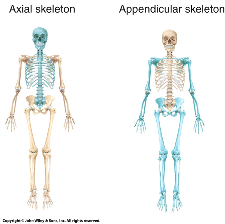Het axiale skelet bestaat uit de schedel, ribbenkast en de wervelkolom en deze bestaan samen ongeveer uit 80 beenderen.